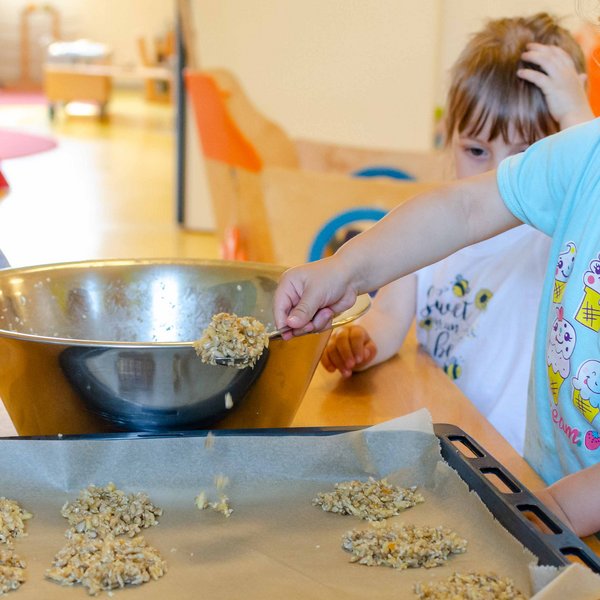 Kreative Ideen und anregende Aktivitäten verhelfen den Kindern zu einem gesunden Leben mit Genuss, Spaß und Freude. Wir kochen täglich frisch und vollwertig